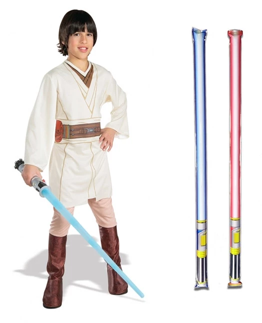 Jedi-Robe.com are pleased to offer x2 FREE self-inflating lightsabers with every child fancy dress costume. Colours may vary.