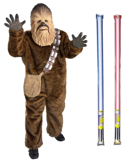 Jedi-Robe.com are pleased to offer x2 FREE self-inflating lightsabers with every child fancy dress costume. Colours may vary.